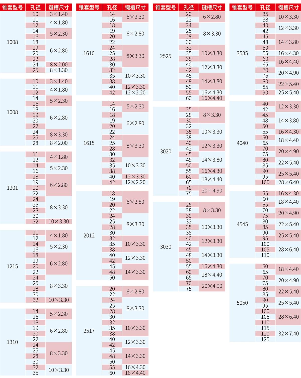 錐套美標(biāo)孔徑